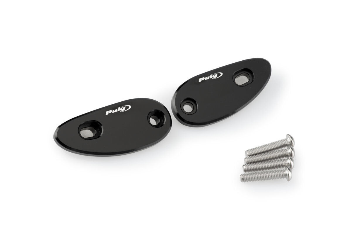 The covers for the Puig rear-view mirror will achieve a clean and well-finished image in case of removing the mirrors to enter the circuit. The pieces are made from an aluminum block anodized in black, a tone that matches any sporty model.