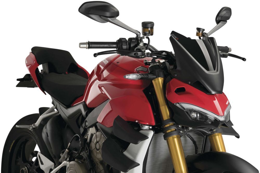 Its adaptation is made from the two metal supports, which fit perfectly with the front of the motorcycle without the need to go to a mechanic. The Sport windshield designed specifically for the new 2020 Ducati Streetfighter V4 / S perfectly aligns with its radical aesthetics, with sharp and aerodynamic shapes.