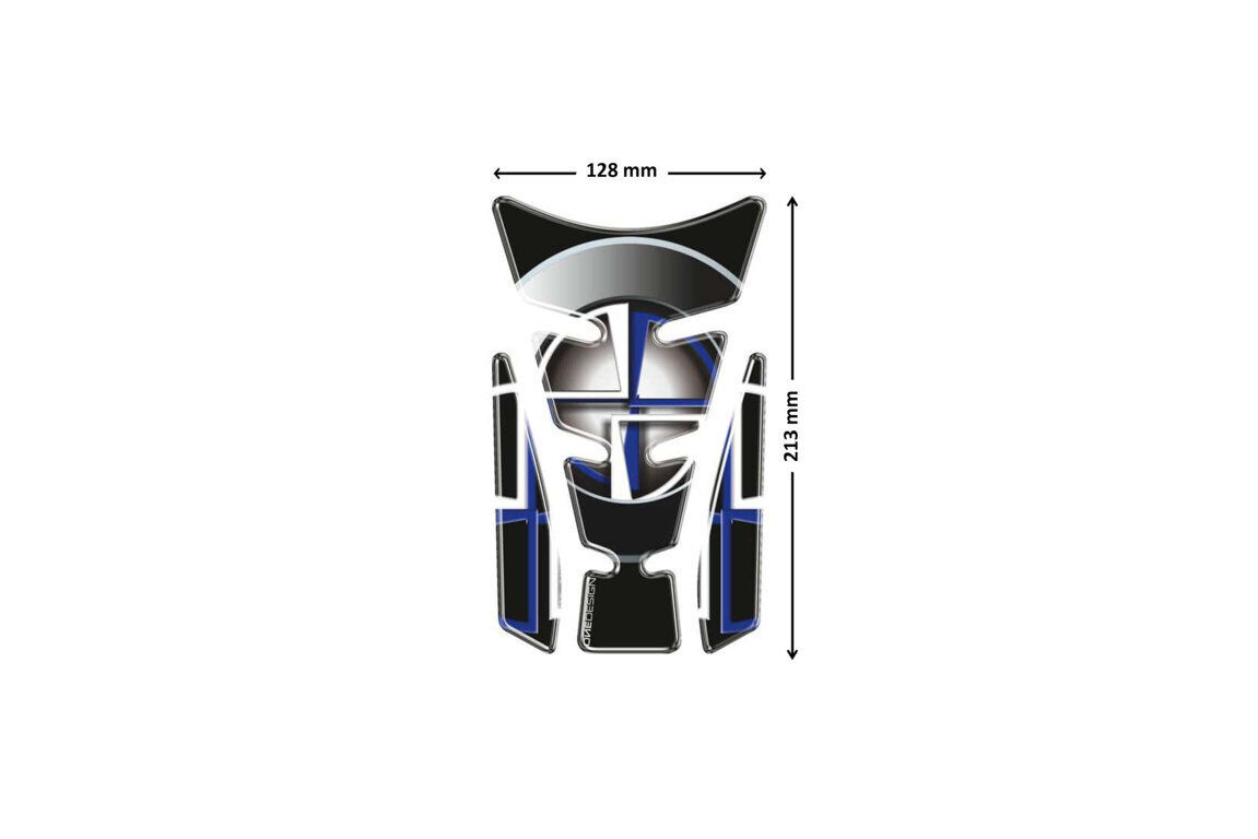 Three parts tank protector: central section with the name of the motorcycle brand and two other on the sides. We have several models with the names of the main motorcycle manufacturers.