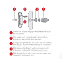 Kit includes RAM® Torque™ Medium Rail Base and medium length B size RAM® double socket arm; ball and socket technology allows for near-infinite adjustability