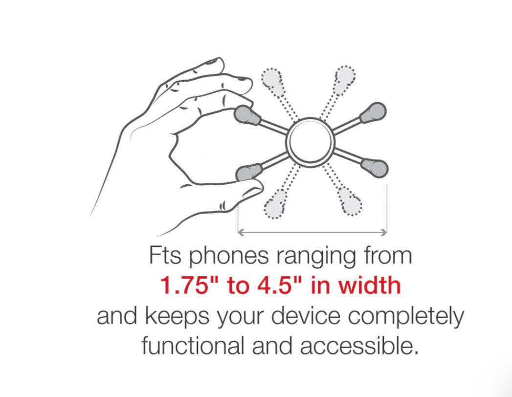 Spring-loaded 'X' design for large phones with rubber caps sports great holding power without hiding your phone; includes optional device tether for peace of mind during rugged use